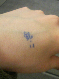 と手の甲に書いたらなんか銀八みたいになりました(笑)