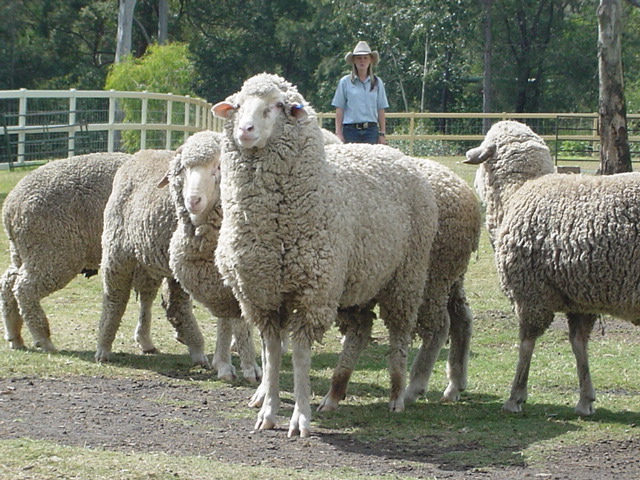 こっちはヒツジ。奥で直立している女性はカウガールです。
