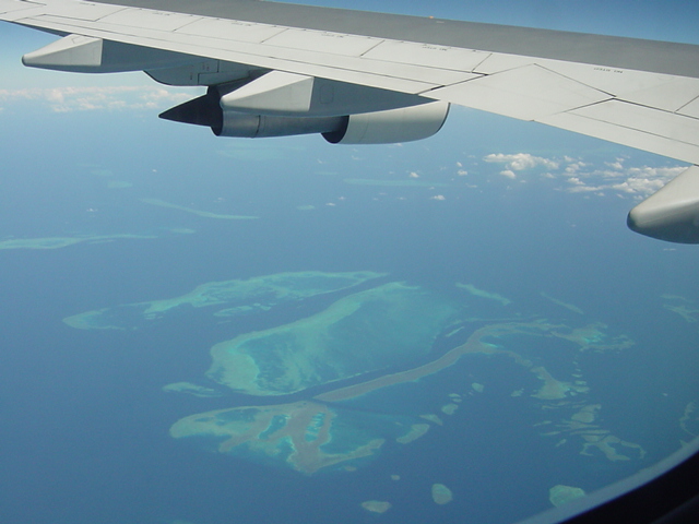 飛行機から見たグレートバリアリーフ。ごっつい絶景やんなあ。